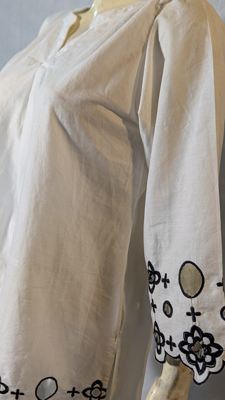 Elevate your wardrobe with Yashal, a 2-piece stitched co-ord set featuring delicate cutwork embroidery on the shirt and sleeves,